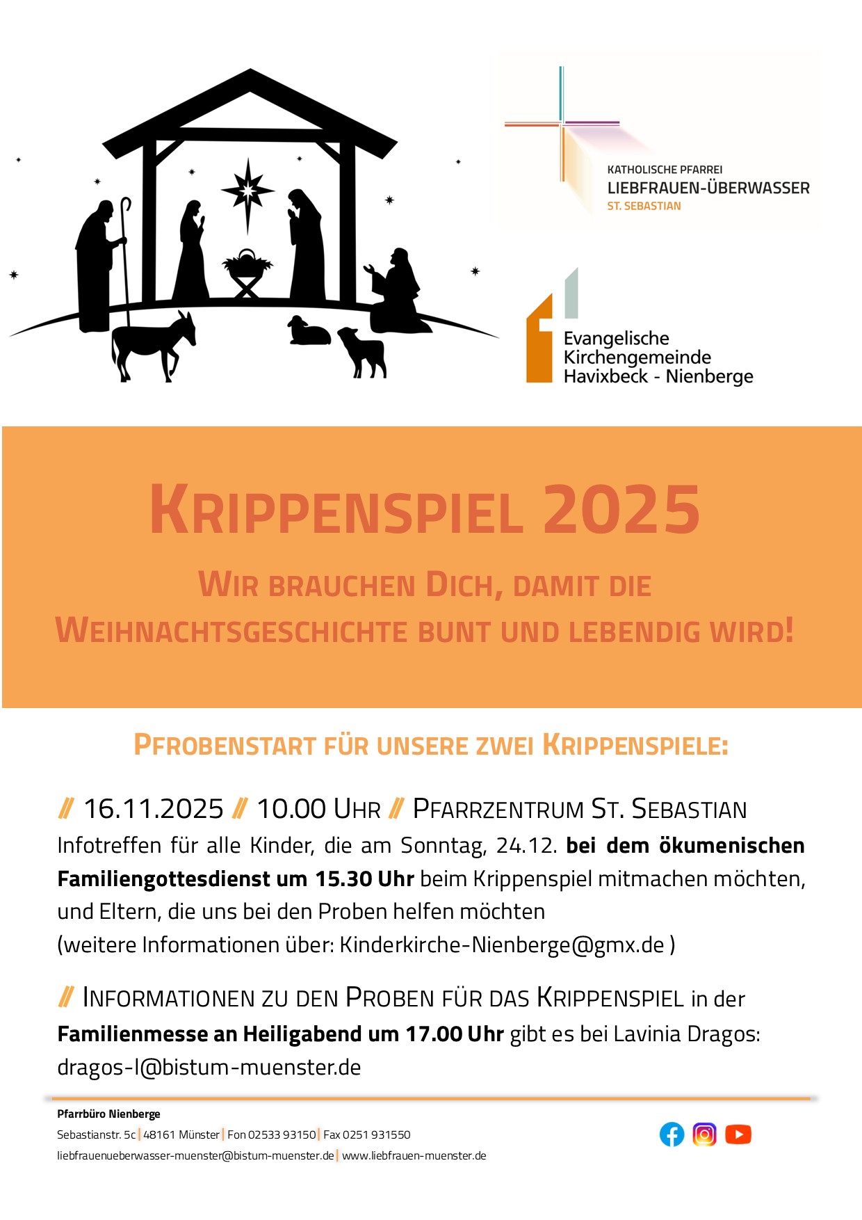 Sowohl in Havixbeck als auch in Nienberge (dort ökumenisch) beginnen die Vorbereitungen und Proben für die Krippenspiele am Heiligen Abend.